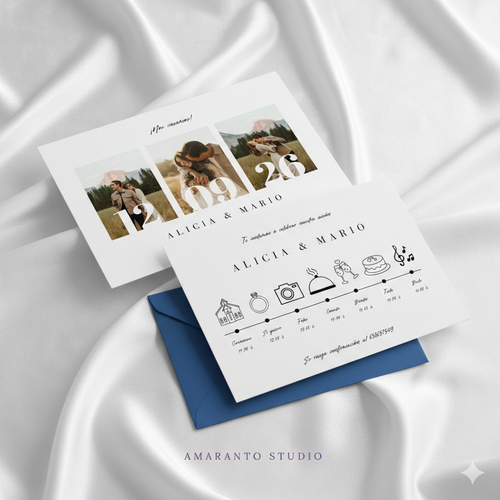– Invitaciones 100 % personalizadas, diseñadas desde cero contigo.